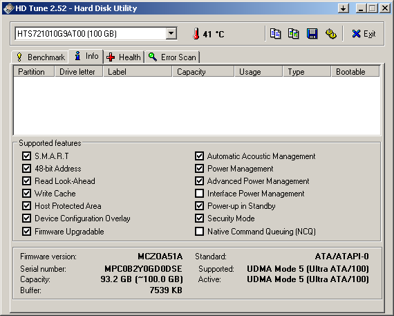 С точки зрения поддерживаемых функций различия между моделями серий 7K100 с разными интерфейсами заключаются лишь в отсутствии поддержки Interface Power Management и NCQ у UltraATA-вариантов. Управление акустикой поиска через регистр AAM здесь, разумеется, поддерживаются.