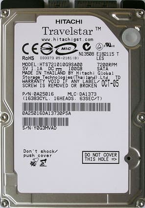 - Hitachi Travelstar 5K100 HTS541010G9SA00, 100 Гбайт SATA