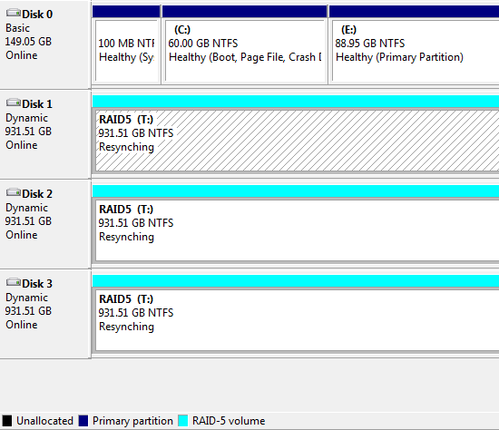- «виндовый» RAID 5 из 3 дисков.