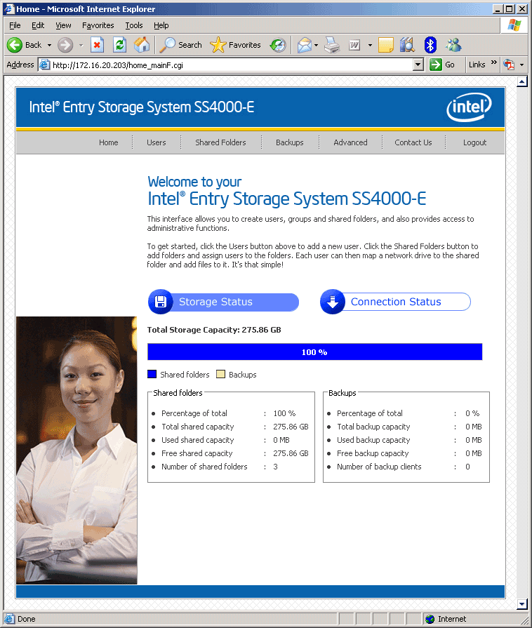 Однако будем надеяться, что герой этой статьи задаст новую тенденцию (как это часто и бывает с продукцией Intel), и пользователи получат возможность использовать относительно недорогие надежные сетевые дисковые накопители. Итак, речь пойдет о системе Intel Entry Storage System SS4000-E. Она была представлена на весеннем IDF в Сан-Франциско, а на выставке CeBit 2006 уже можно было встретить несколько аналогичных устройств под другими марками.