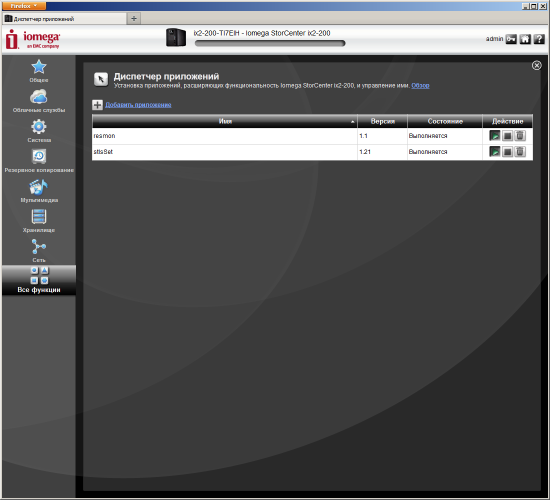 Как и многие другие производители, Iomega в новых версиях прошивок решила вынести некоторые дополнительные функции в устанавливаемые отдельно программные модули. Это позволяет более удобно проводить обновления и реализовывать новые программы без изменения основной прошивки. Для управления модулями используется раздел «Диспетчер приложений». К сожалению, установка возможна только после самостоятельной загрузки файла с модулем на ПК, сразу из web-интерфейса устройства это сделать нельзя. В онлайн-каталоге, расположенном на сайте lifelineapps.com, на момент написания статьи присутствовало всего несколько утилит для данной модели: модуль отправки сообщений в твиттер при появлении новых файлов в папке, две системы видеонаблюдения и программа мониторинга загрузки процессора, оперативной памяти, а также сетевых операций. Хочется надеяться, что со временем их число вырастет. Хотя, с другой стороны, в рассматриваемой модели не такой уж мощный процессор, да и оперативной памяти немного.