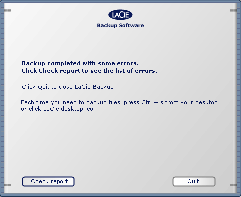 В случае возникновения ошибок при резервном копировании файлов выдается предупреждение: