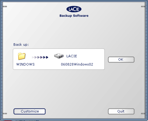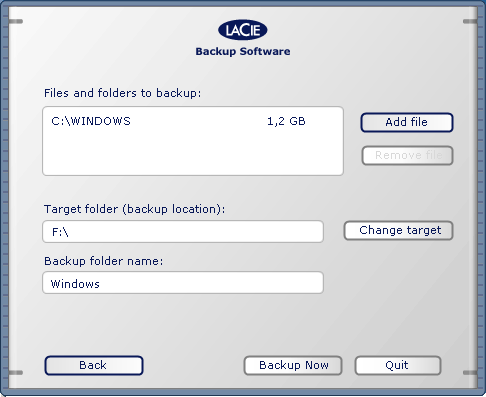 Во-первых, это LaCie «1-Click» Backup для Windows 98SE/Me/2000/XP и Mac OS 10.2 и выше — программа для резервного сохранения и восстановления данных с интуитивно понятным интерфейсом.