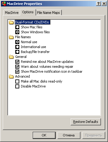 Программа MacDrive 6.0.3 снабжает пользователя некоторыми дополнительными инструментами для работы с накопителями: