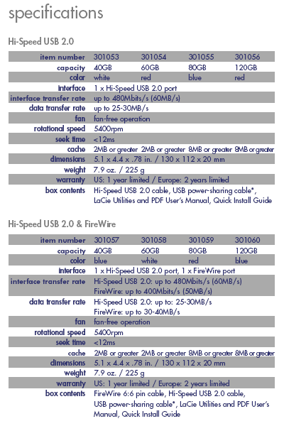 LaCie Brick Mobile HD 80 Гбайт, USB 2.0 | LaCie Brick Mobile HD 80 Гбайт, FireWire |