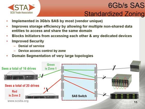 - Стандартизованное (по SAS-2) зонирование и зонирующий экспандер (см. рисунки ниже) для улучшенной поддержки мультихостинга и функций безопасности.