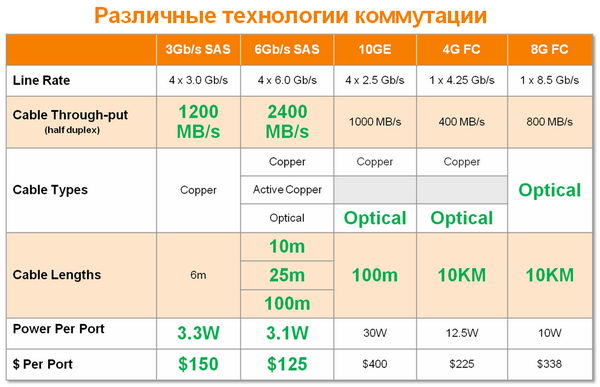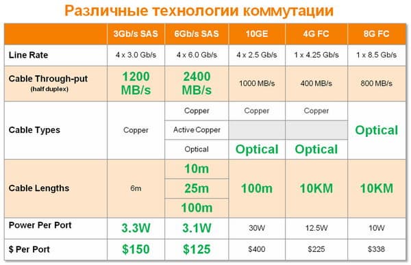 Преимущества SAS-решений по сравнению с 10 GbE и Fibre Channel
