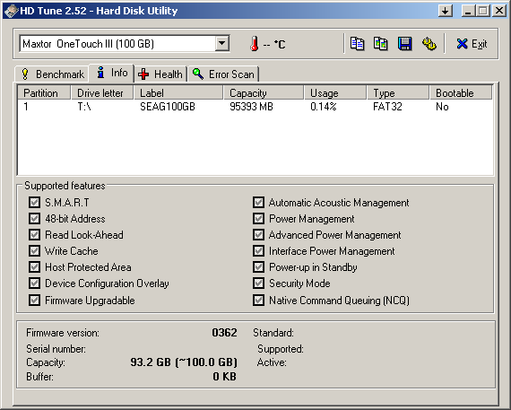 Накопитель Maxtor OneTouch III Mini Edition определяется операционной системой не безлико по модели жесткого диска, как многие другие внешние накопители, а именно как Maxtor OneTouch III Mini Edition. :) Соответственно, информация по используемому жесткому диску обычно в ОС недоступна.