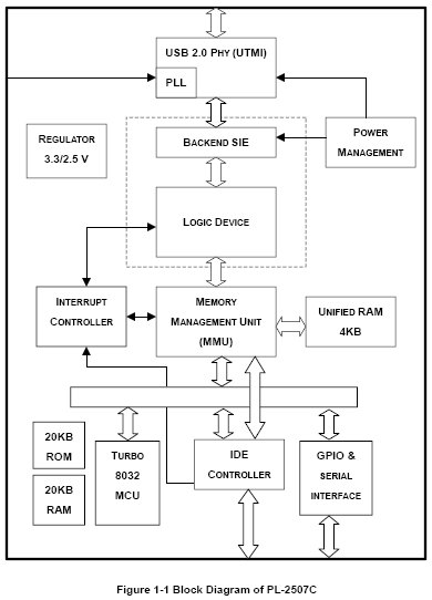 Судя по спецификациям, этот чип имеет вдвое больше памяти (ROM и RAM), чем рассмотренный нами недавно его аналог PL2506. В остальном их характеристики похожи. Ниже мы попробуем выяснить, есть ли у чипа PL-2507 скоростные преимущества перед PL2506 и другими решениями.