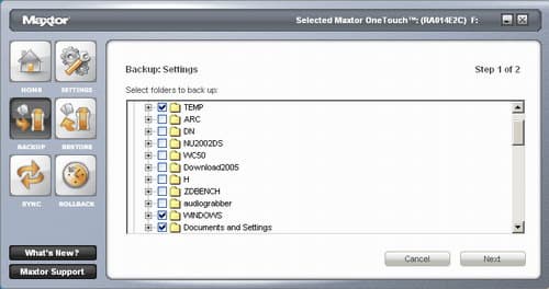 Впрочем, то, что специальных драйверов для работы Mini Edition в Windows XP/2000 не требуется, не должно вводить вас в заблуждение. Со стандартными драйверами этих ОС наш герой будет вести себя как стандартный внешний сторадж, и только после установки специального ПО от Maxtor он получит всю ту дополнительную и весьма полезную функциональность (включая работу по кнопке), которая и выделяет его на общем фоне.