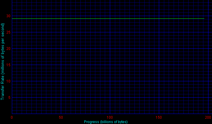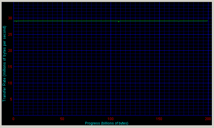Поскольку производительность Maxtor в различных паттернах синтетического теста Intel IOMeter оказалась не очень впечатляющей, было решено подстраховаться и проверить на всякий случай скорость накопителя при непосредственном копировании крупных файлов, при записи и чтении файлов. Для этого мы воспользовались программой FC-Test 1.0. При выборе паттернов для FC-Test мы старались «выжать» из диска максимум скорости, используя крупные файлы по 500-700 Мбайт. Результаты измерений сведены в таблицу 6.