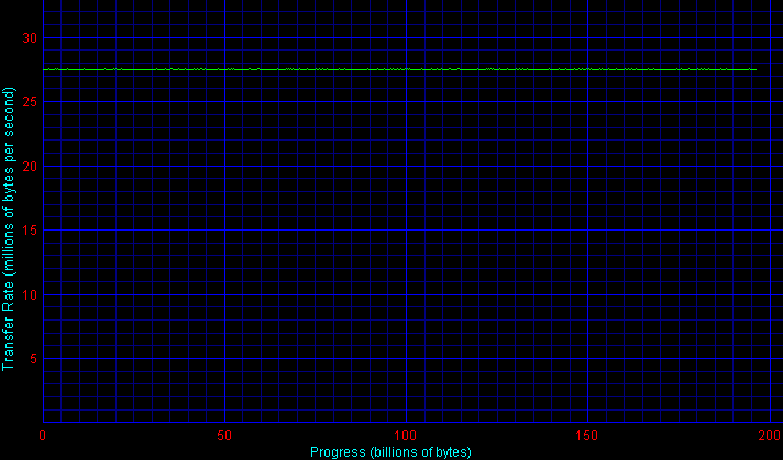 Однако нам важнее другое — только использование интерфейса 1394b позволяет раскрыть весь скоростной потенциал современного винчестера, тогда как для остальных способов подключения скорость жесткого диска оказывается в большой степени «стреножена» внешним интерфейсом. Причем, FireWire с контроллером от NEC показывает здесь себя гораздо более шустрым, чем интерфейс USB 2.0, лимитирующий скорость подключения дисков Maxtor на уровне всего около 27 Мбайт/с.