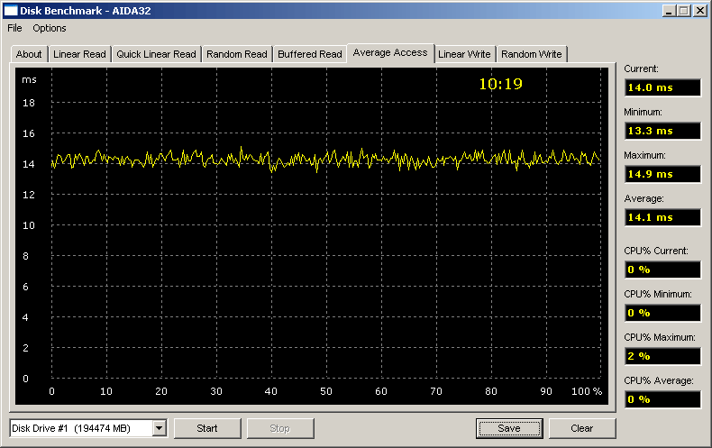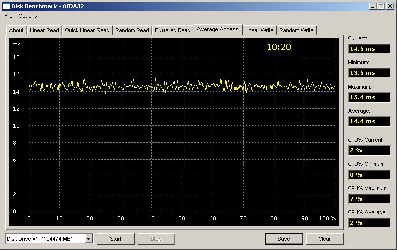 Очевидно, что среднее время поиска у внешнего диска немного страдает только для варианта SBE, а кэширование во всех вариантах подключения внешних накопителей настолько эффективно, что средний показатель случайного чтения в тесте AIDA32 практически не уступает таковому для линейного (упорядоченного) чтения, а при записи даже немножко превосходит таковой для линейного доступа!