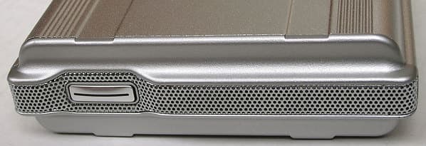 Maxtor OneTouch II FireWire 800 Edition анфас является практически полным близнецом SBE — тот же добротный рифлёный алюминиевый корпус с отверстиями для вентилятора и кнопкой OneTouch Button с синими светодиодами на переднем торце.