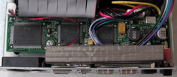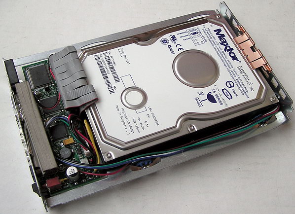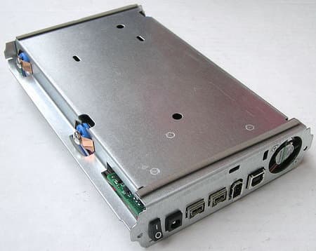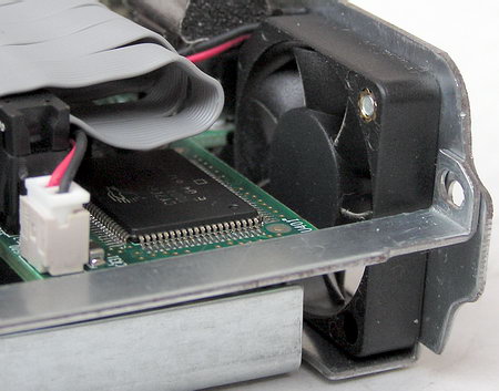 установлен не только винчестер и плата контроллер, но и вентилятор для выдува воздуха из корпуса.