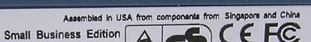 данный накопитель может располагаться как традиционно горизонтально (приклеивающиеся резиновые ножки прилагаются), так и вертикально, для чего имеется пластмассовая подставка (см. фото выше). Передняя панель корпуса с единственной кнопкой управления (и по совместительству — индикации режимов) для серии Small Business Edition «окрашена» в синие тона (пластиковыми вставками),