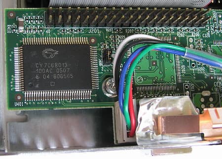 покоится на шасси рядышком с универсальной печатной платкой контроллера, на которой в данном случае распаян лишь пятивольтовый стабилизатор питания и преобразователь USB-IDE.