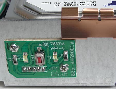 Внутренности накопителя не менее «лаконичны» — двухсотгигабайтный DiamondMax 10 с параллельным интерфейсом