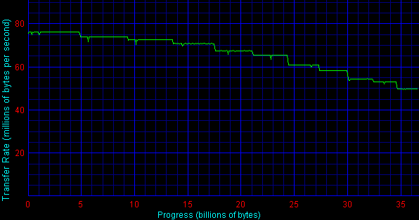А здесь ситуация не настолько радужная для Maxtor'a — хоть и максимальная скорость записи выше, чем у Seagate, достигается она несколько позже.