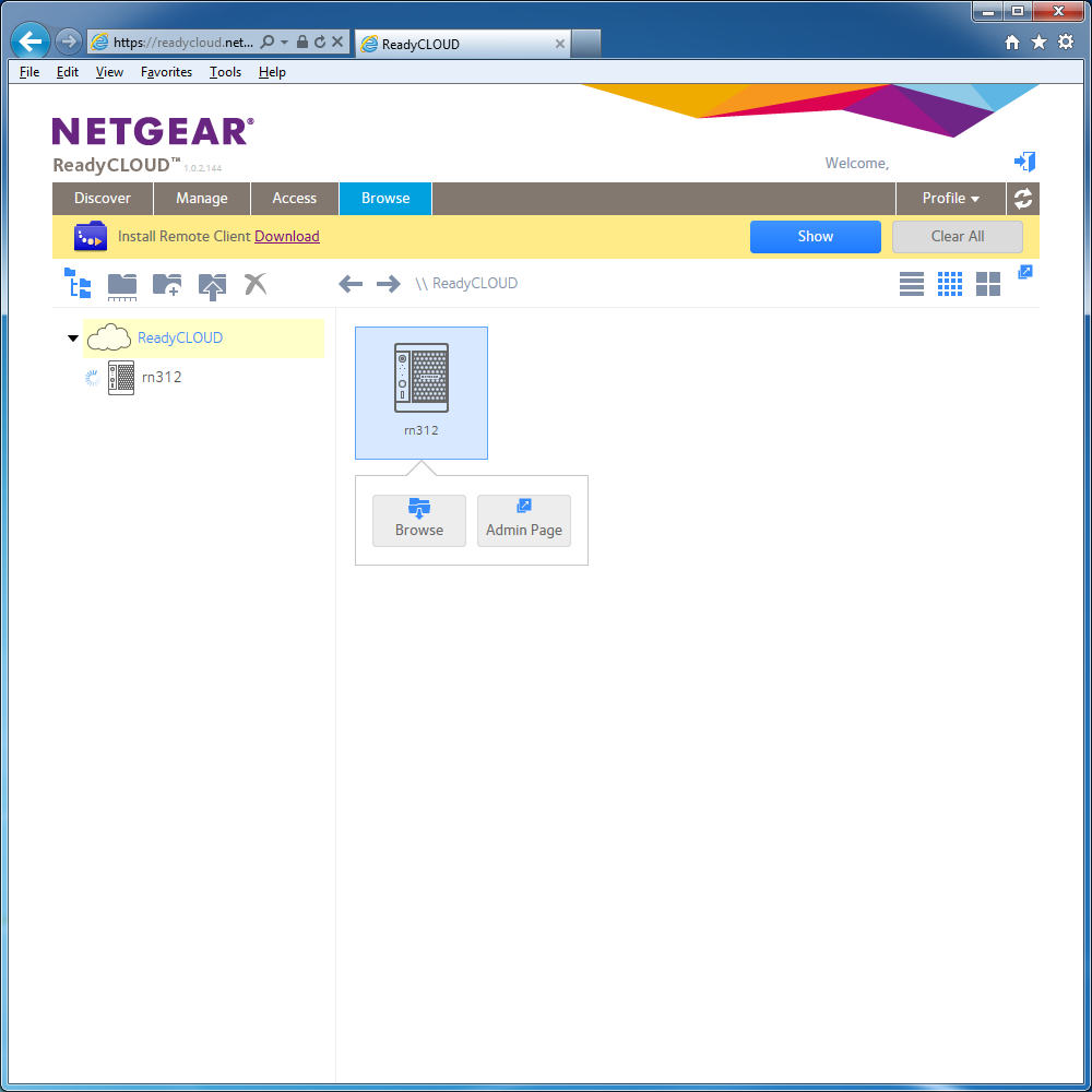 ReadyNAS Remote работает по технологии создания виртуальной сети между клиентами и сетевыми накопителями. Так что через нее можно монтировать диски стандартными способами через проводник и получать доступ к интерфейсу администрирования накопителя. Минусом такого подхода является заметное снижение скорости доступа, чем при более традиционных способах.
