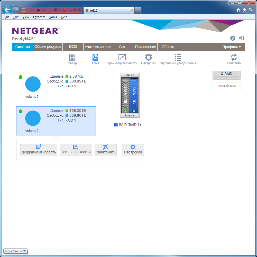 Из дополнительных возможностей отметим встроенные сервисы дефрагментациии и проверки целостности данных. Интересно, что для томов (и системного и с данными пользователя) используется файловая система BTRFS. Для системы с каждого диска забирается около 4 ГБ. Остальное пространство отдается для данных пользователя.