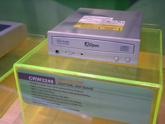 Компания AOpеn продемонстрировала на CeBIT новый CD-RW привод CRW4048. Модель оборудована интерфейсом E-IDE (ATAPI Version 2.6), 8 Мб буфером и имеет скоростную формулу 40/12/48, поддерживает технологии записи JustLink и JustSpeed. CRW4048 соответствует требованиям Orange Book Part II (CD-R) и Part III, Volume 2 V1.0 (CD-RW) и поддерживает режимы DMA и UDMA. Массовые поставки AOpen CRW4048 начнутся в середине апреля.
