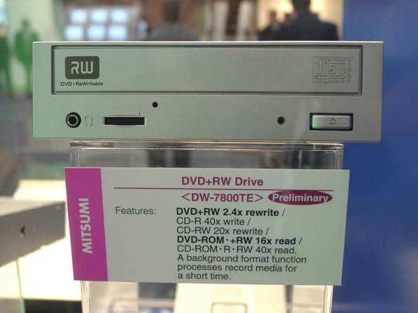 Пожалуй, единственным исключением из всех Ricoh'оподобных устройств стал DVD+RW дисковод от Mitsumi, который хоть и осуществляет запись на DVD+RW носители с 2,4х скоростью, в то же время «прожигает» CD-R с 40x, а CD-RW с 20x скоростями. Считывать же информацию с DVD-ROM носителя DW-7800TE может с шестнадцатикратной скоростью, а CD-ROM с сорокакратной скоростью.