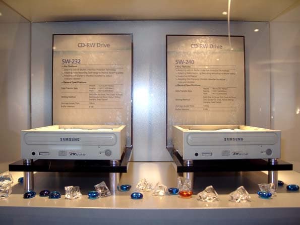 Компания Samsung достаточно пассивно продвигает на отечественном рынке оптические системы записи и хранения информации, несмотря на то, что более мелкие производители считают этот сегмент рынка чрезвычайно прибыльным. Отчасти малый интерес к рекордерам Samsung объясняется сравнительно низкой надежностью CD-ROM дисководов компании, некоторое время назад очень активно продававшихся в России. Тем не менее, корейский гигант продолжает развитие данного сегмента своей деятельности и имеет в своем арсенале 32х и 40x CD-RW дисководы.