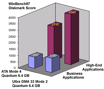 Эти тесты выполнялись на системе с 200-MHz Intel Pentium процессором на материнской плате с чипсетом 82430TX, 32 Mб памяти и жестким диском Quantum Fireball ST на 6,4 Гб, поддерживающим Ultra DMA-33.