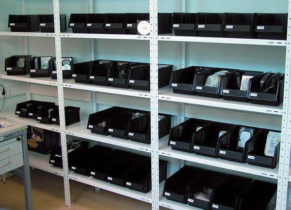 Лабораторию можно разделить на четыре рабочих области. Во-первых, это склад дисков. У Ontrack есть все модели дисков, начиная с 1985 года, причем если нет в конкретной лаборатории, то можно запросить отделения в других странах. Огромное хранилище различных моделей есть в Европе и США. У Ontrack есть все модификации каждой из моделей по одной или несколько штук.