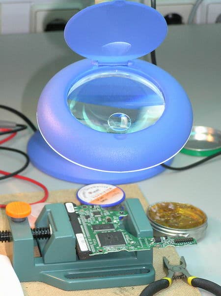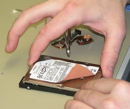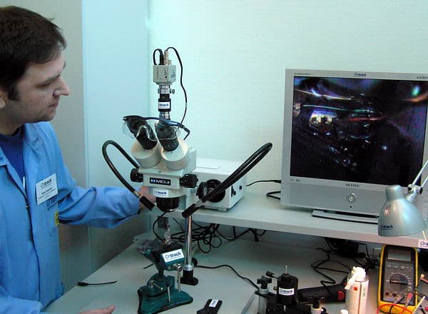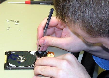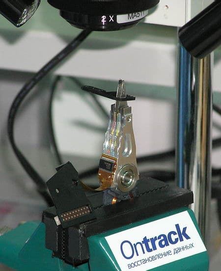 Под микроскопом рассматриваются головки и поверхности жесткого диска. Если диагностика неисправности проведена неправильно, это может только ухудшить восстановление данных.