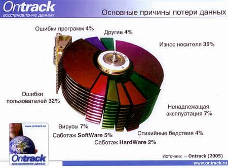 Основные причины потери данных, по данным Ontrack, представлены на следующем слайде:
