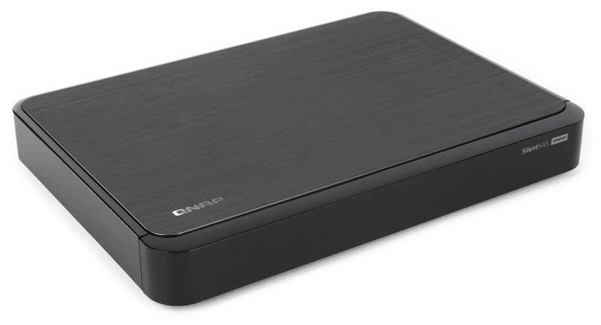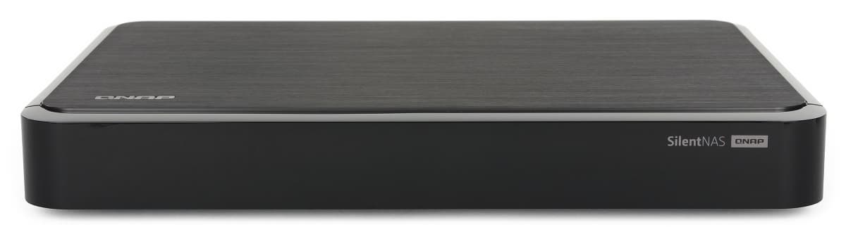 Внешний вид и конструкция устройства не отличается от прошлой модели серии SilentNAS. Основные элементы корпуса, имеющего габаритные размеры 302×220×41 мм, изготовлены из черного пластика. На торцах он глянцевый, а дно матовое. Устойчивости устройству придают четыре крупные, но невысокие резиновые ножки.