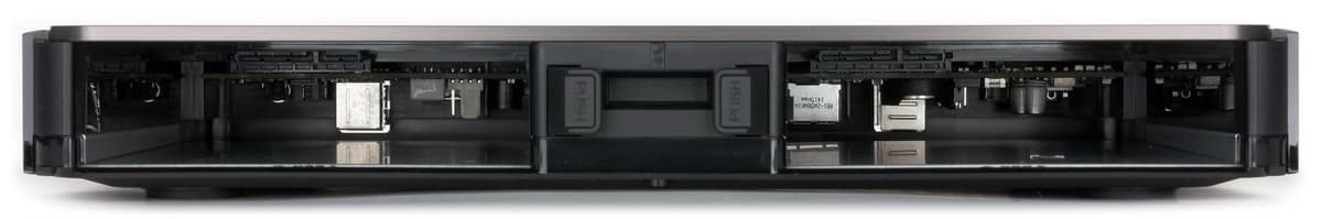 Поскольку вентиляторов в корпусе этой модели нет, а винчестеры устанавливаются в доступные снаружи отсеки, разбирать корпус накопителя пользователю нет никакого смысла.