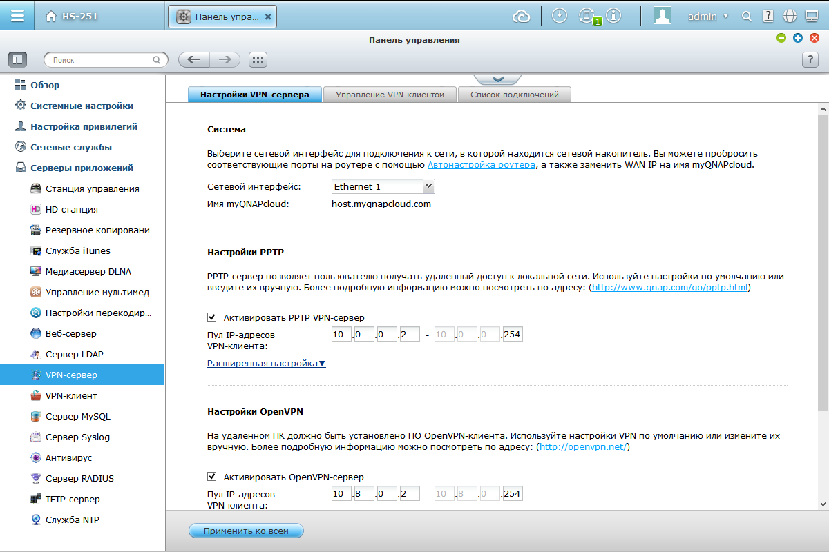 Много внимания уделяет компания обеспечению удаленного доступа к устройству и данным. Специализированный сервис myQNAPcloud и одноименный портал в сочетании с модулем CloudLink упрощают конфигурацию сетевых настроек и позволяют обеспечить работу даже через «серый» IP-адрес.