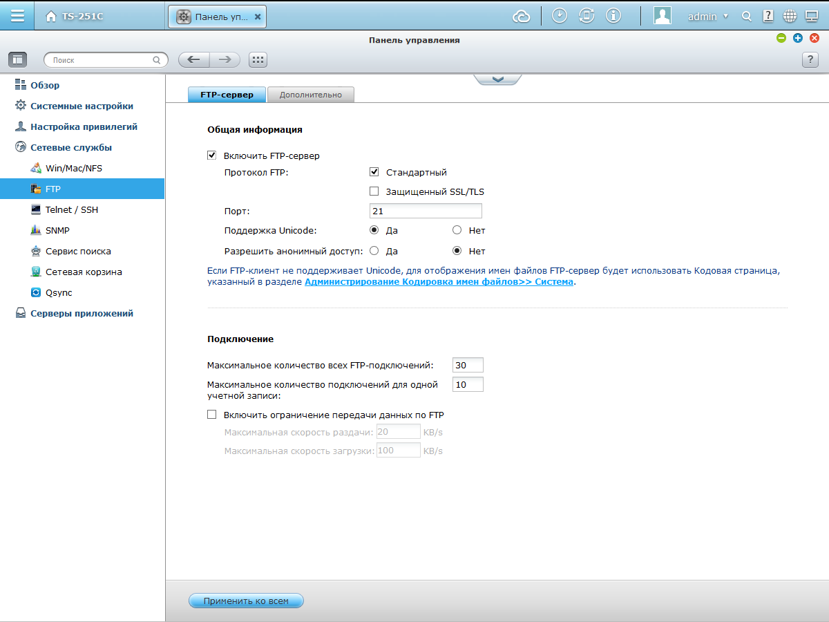 Сервер поддерживает все популярные современные протоколы доступа, включая SMB, AFP, NFS, FTP и WevDAV. Упростить поиск устройства в сети помогут UPnP и Bonjour.