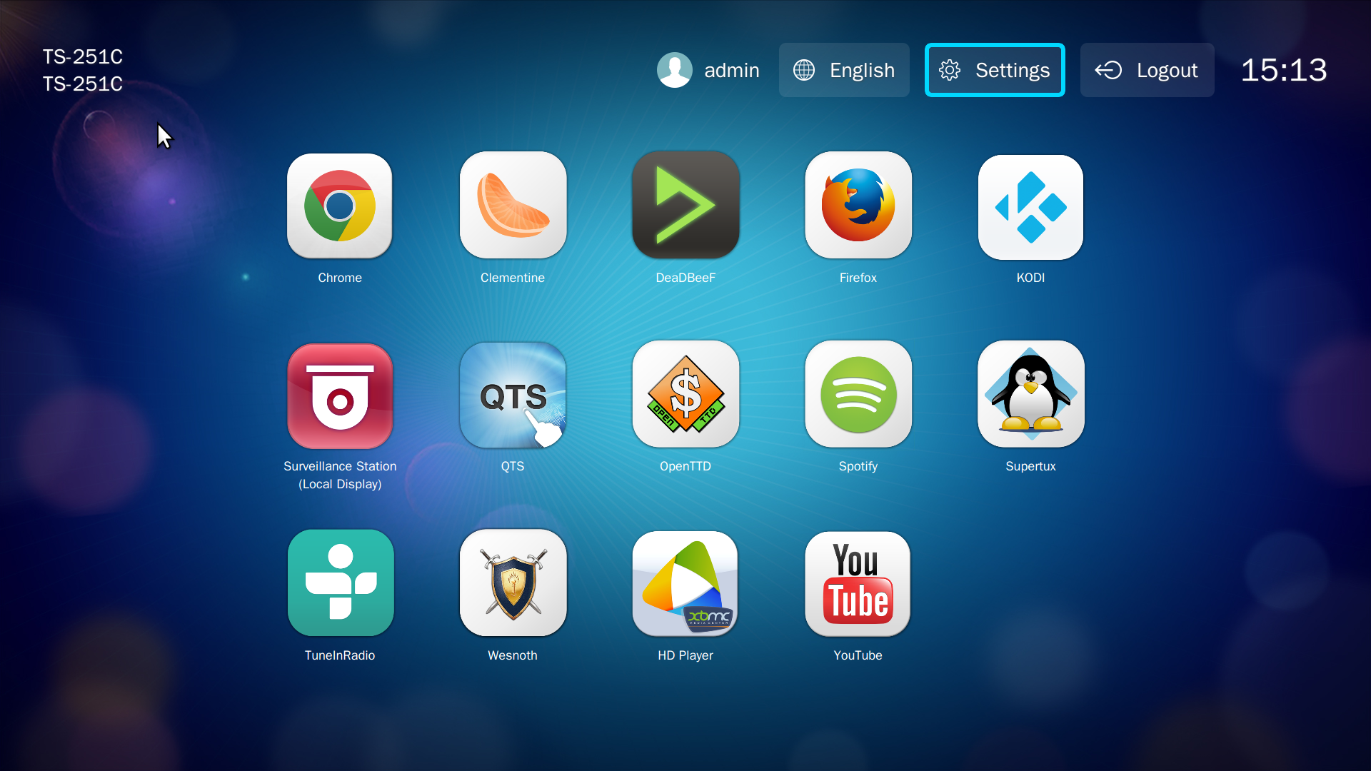 С настройками по умолчанию, на рабочем столе также присутствуют модули HD-станции для работы с подключением по HDMI, File Station для управления файлами, программа резервного копирования, специальный модуль для упрощения настройки удаленного доступа myQNAPcloud, программа синхронизации Qsync, система видеонаблюдения, антивирус и App Center для установки дополнительных программ.