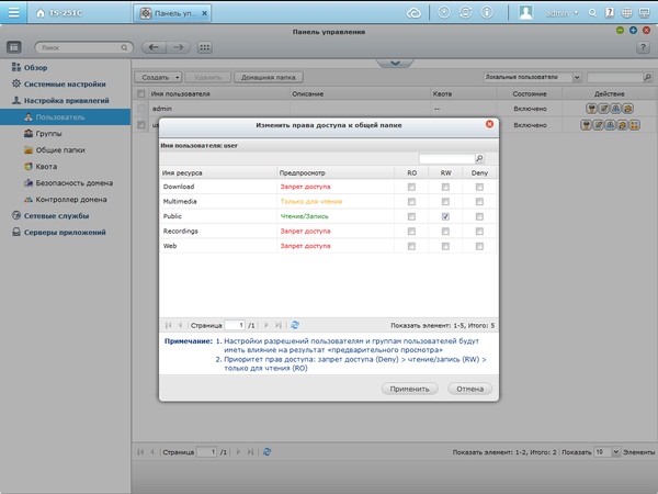 Отметим, что данная модель и сама может выступать в роли контроллера домена. Интересно, что пользователям можно ограничивать права не только на файлы, но и сервисы, например сервер FTP.