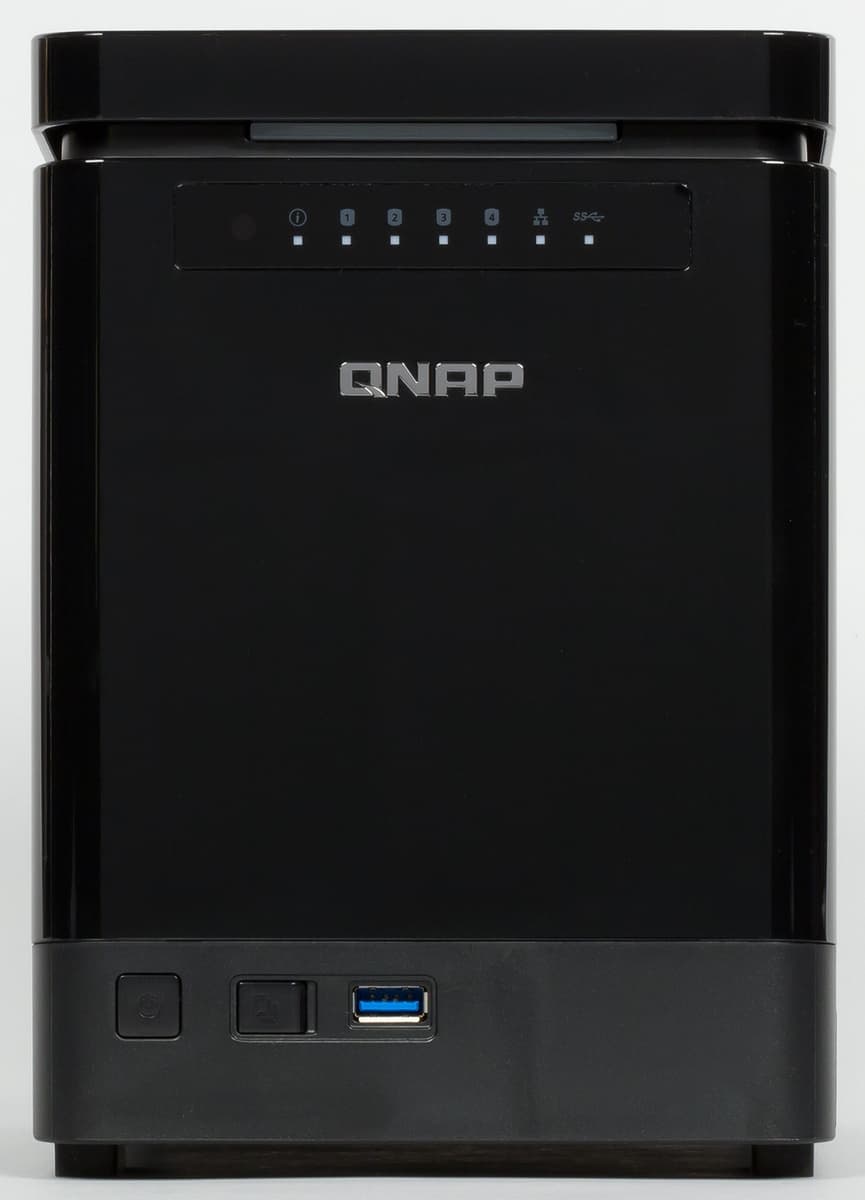 Отметим, что отличий от других моделей серии TS-x53 у данного устройства относительно немного. Кроме конструкции корпуса и габаритных размеров, можно отметить наличие только двух гигабитных сетевых портов (против четырех у TS-453 Pro). С точки зрения программного обеспечения и возможностей, устройства в семействе практически не отличаются.