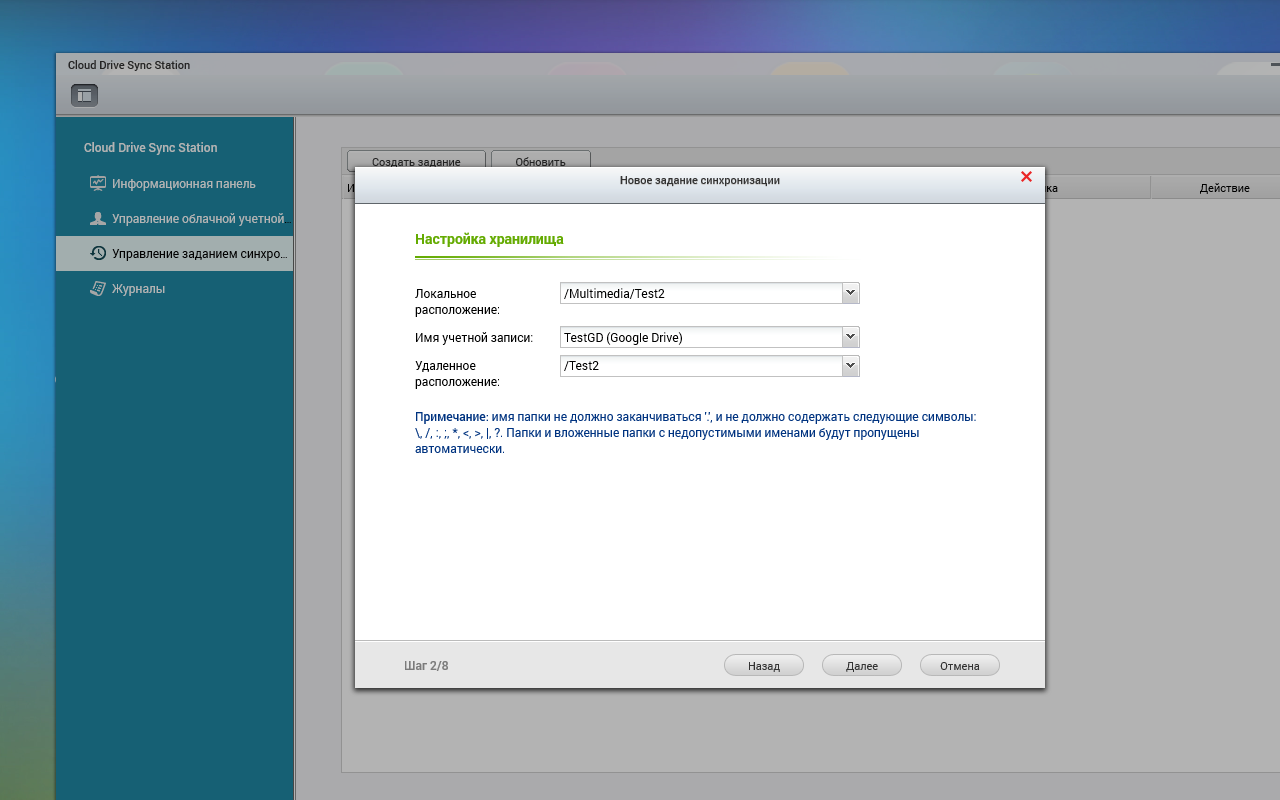 При этом вы можете создавать пары из любых папок на сетевом накопителе и облачном диске.