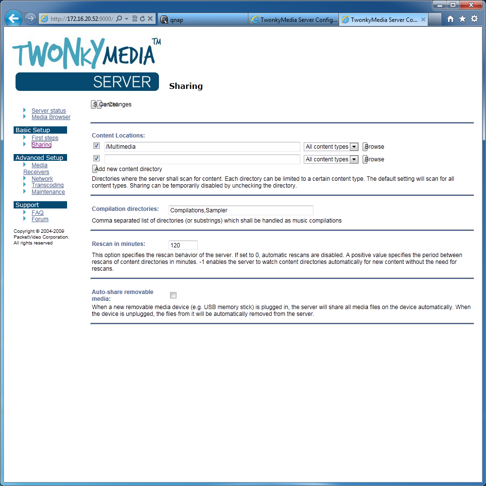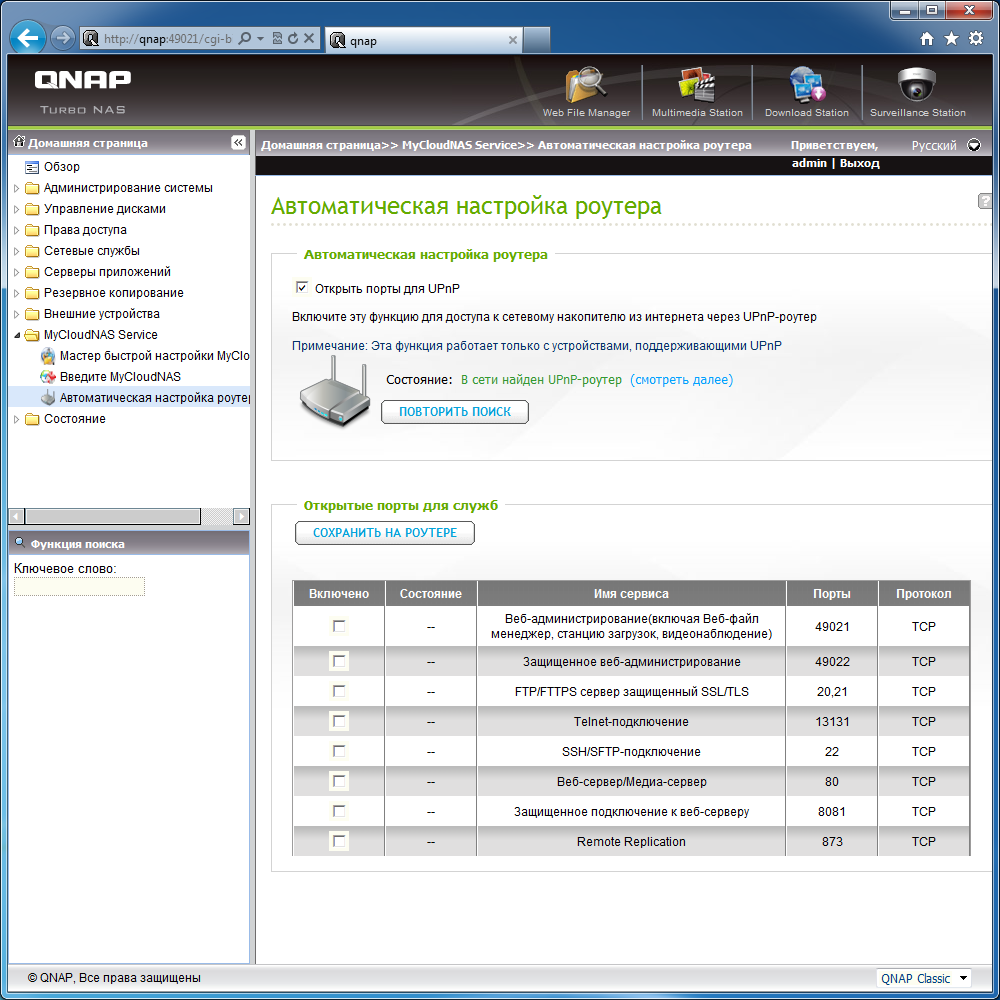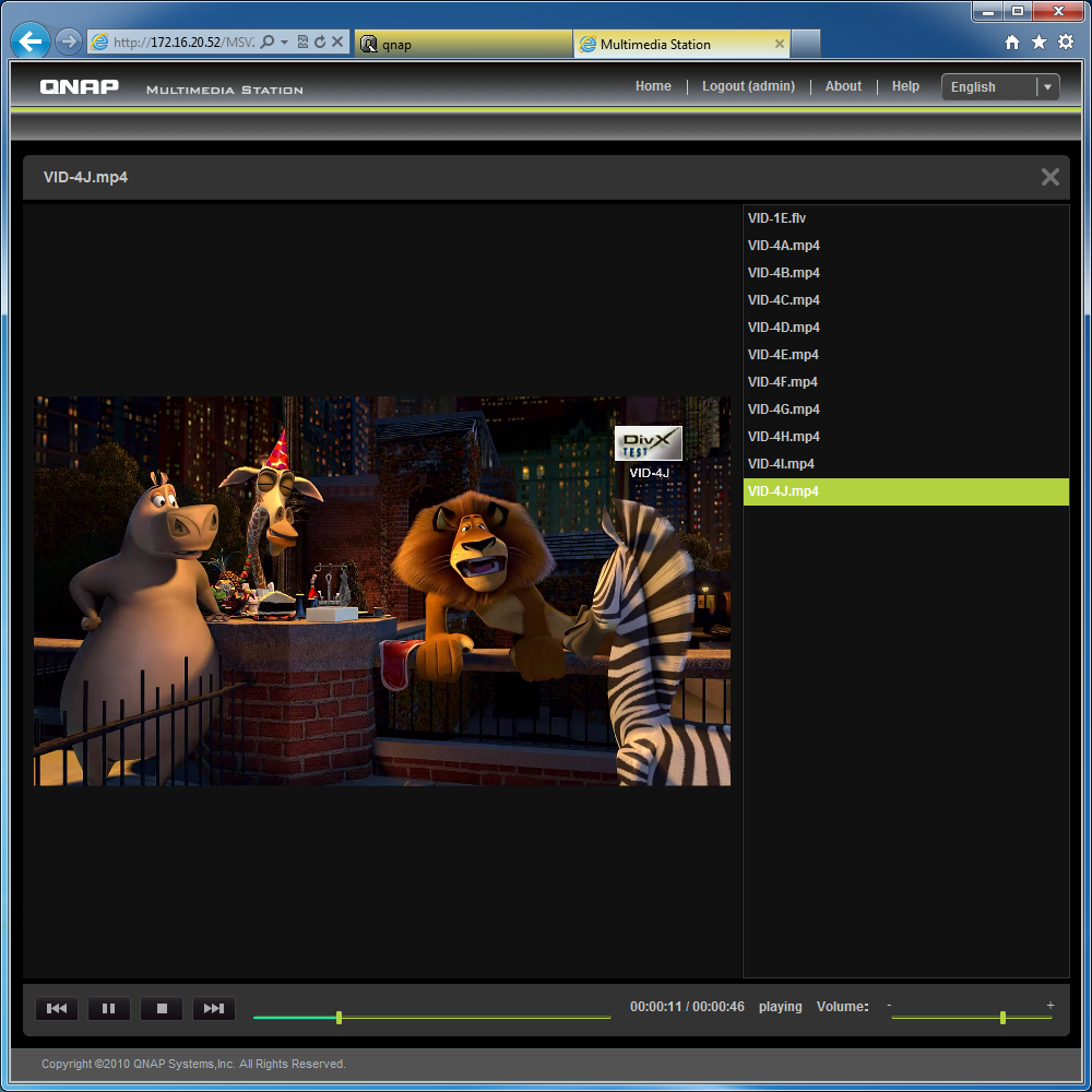 Маловероятно, что мультимедийные возможности NAS будут использоваться в бизнес-среде, но прошивки близки по функциональности для различных линеек Turbo NAS, так что и в рассматриваемом устройстве есть сервер UPnP/DLNA (на базе продукта TwonkyMedia) и сервер iTunes. Первый из них позволяет использовать любые общие папки для хранения файлов, что достаточно удобно для подобного многодискового устройства. При необходимости параметры сервера можно изменить из его собственного веб-интерфейса. Совместимость с медиаформатами и плеерами на высоте — в большинстве конфигураций можно без проблем просматривать в том числе и видео высокого разрешения. С iTunes ситуация типичная — используются только файлы MP3 и M4A из папки «Multimedia», а возможность настройки сервиса не предусмотрена.