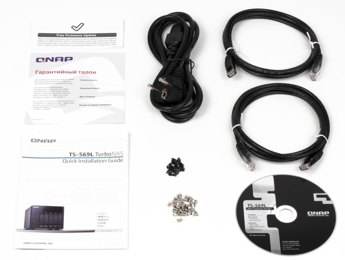 Комплект поставки стандартный: устройство, кабель питания, два сетевых патч-корда, винты для крепления винчестеров, листовка по быстрой установке, гарантийный талон и компакт-диск с программами и документацией. На сайте компании можно загрузить обновления прошивок, утилит и электронные версии руководств. Отметим наличие специального раздела сайта для помощи начинающим пользователям и демо-интерфейса устройств.