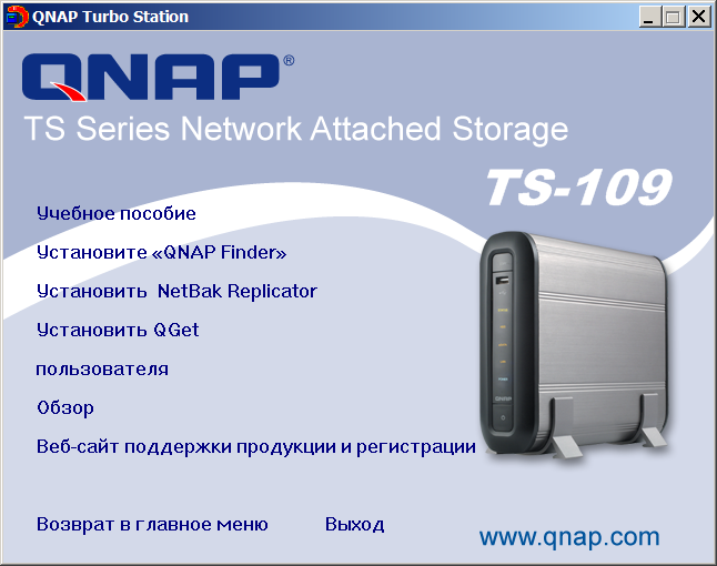 На комплектном диске мы обнаруживаем джентльменский набор утилит. Роль основной управляющей утилиты в данном случае играет QNAP Finder, одна установка которой превратилась в лингвистический праздник, затмив, пожалуй, даже прежний хит, вычитанный из инструкции к китайским мелкам от тараканов: «Красите мелом туда, где вредитель действует и живёт». Судите сами: