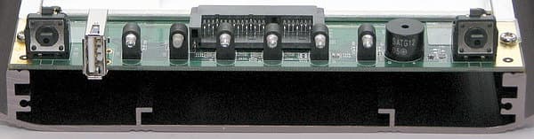 И на пользователя смотрят шесть светодиодов, порт USB и две кнопки (в отличие от DS107, где eSATA-порт находится спереди устройства, у TS-109 он расположен сзади, см. фото выше). Хорошо в TS-109 Pro и то, что SATA-разъем для подключения внутреннего винчестера прочно впаян в плату (в DS107 использовались гибкие шлейфы SATA).