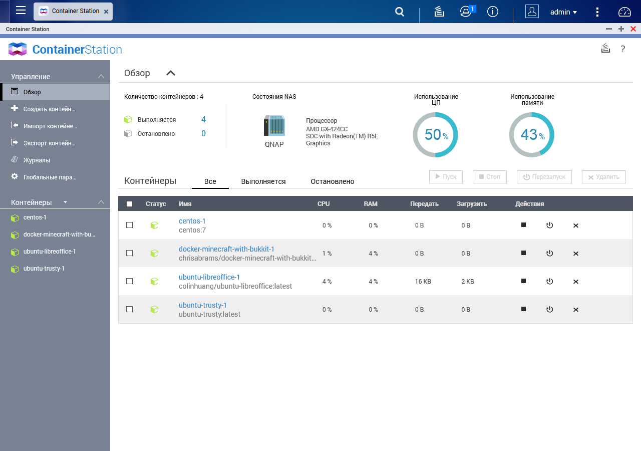 Правда в данном случае может быть более удобным работать с модулем Container Station, который поддерживает технологии виртуализации LXC и Docker.