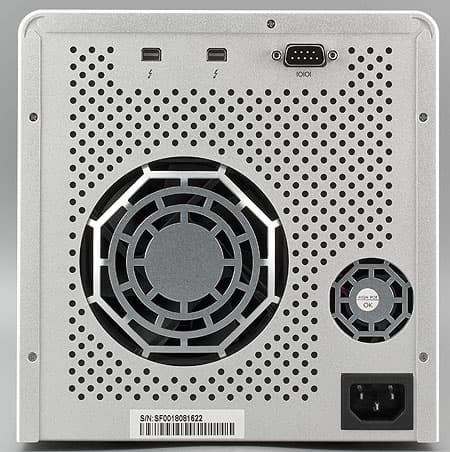 Единственное заметное отличие Pegasus — на задней панели вместо привычных разъемов Ethernet, eSATA, FireWire или USB расположены два порта Thunderbolt.