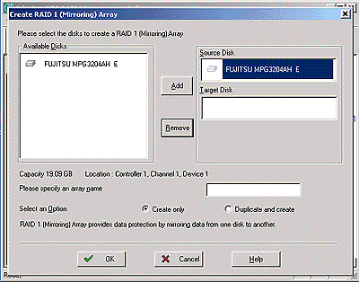 При создании массива RAID1 («зеркалки») есть возможность скопировать содержимое имеющегося диска на зеркало. Кстати, рекомендую именно этот способ создания массива. Дело в том, что в случае, когда сначала создается массив, а потом он форматируется, достаточно регулярно встречалась следующая ситуация. После перезагрузки массив