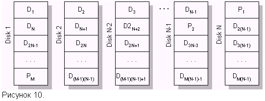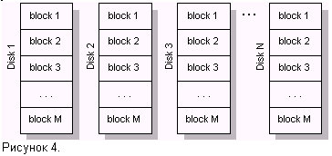 | 4 | 3 | N+1 | < RAID 1 | R < RAID 3 W < RAID 5 | R = RAID 0 W << 1 диск | файл-серверы |