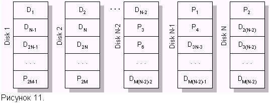 | 2 | 7 | 2N | < RAID 1 | ~ RAID 3 | Низкая | мейнфреймы |