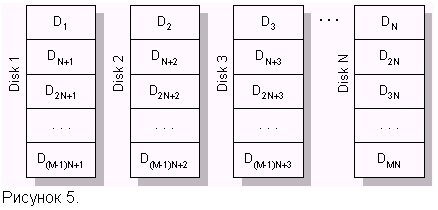 Теперь давайте рассмотрим архитектуру основных уровней (basic levels) RAID более детально. Перед рассмотрением примем некоторые допущения. Для демонстрации принципов построения RAID систем рассмотрим набор из N дисков (для упрощения N будем считать четным числом), каждый из которых состоит из M блоков.